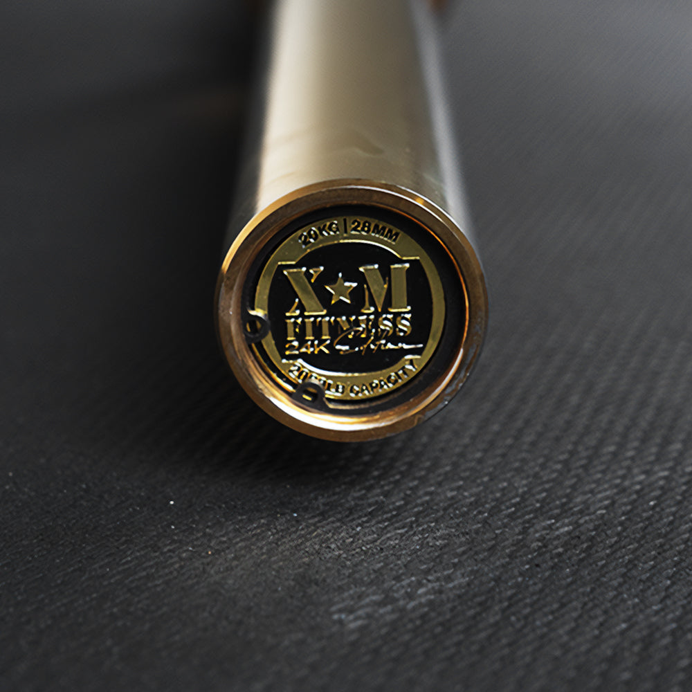 This Alloy Steel 45lb bar is made with a hardened chrome finish and comes with a double ring and no centre knurling. The ends include a plastic cap to show off our signature XM logo.