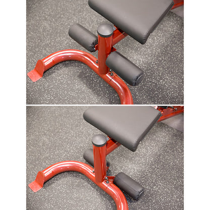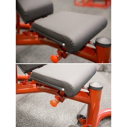 Convenient transport wheels let you move the bench effortlessly in and out of the gym. Lock your legs in the leg lock-down featuring oversize rollers for extra comfort and stability while you perform upper and lower abdominal exercises as well as incline and decline strength training. Back and seat pads lock into eight positions to align your body for perfect posture.