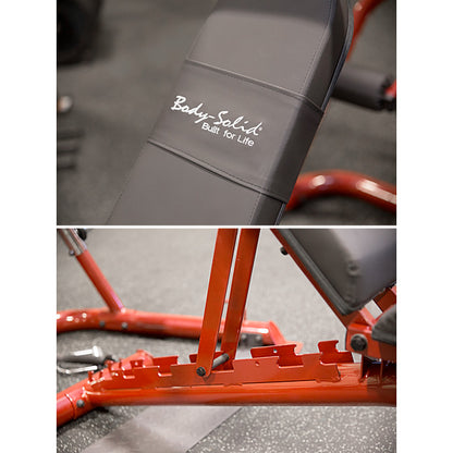 The included premium GFID100, Flat / Incline / Decline Bench can slide in and out allowing for ease-of-use and a smooth transition from exercise-to-exercise while attached wheels make transport a breeze. Stand-alone design allows bench to be used completely independently of the gym system.