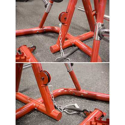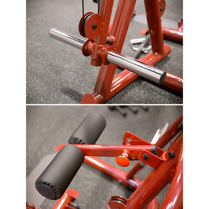 Perform shrugs, squats, dead lifts, biceps curls and everything in-between more easily and effective. With a revolutionary space-saving design the GLGS100P4 fits comfortably into most home and commercial settings. With an all-new, high-tech/high-gloss anodized red finish, this gym not only stands out for its performance but also its looks.