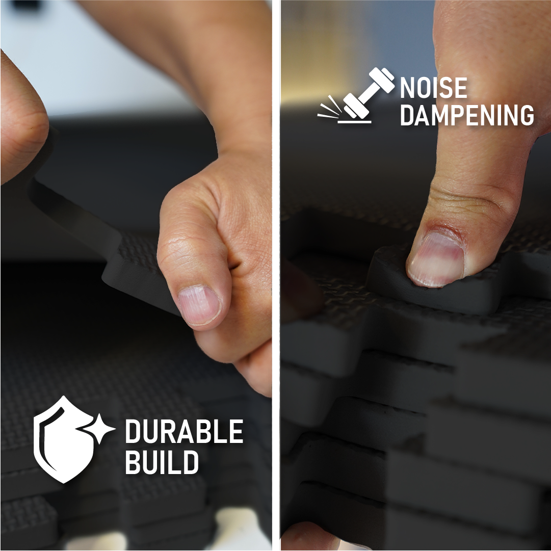 Crafted from high-density EVA foam, these 0.5" thick interlocking tiles protect floors from scratches, dents, and heavy impact.