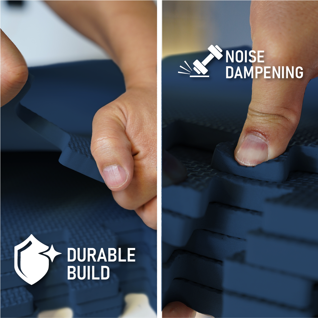 Crafted from high-density EVA foam, these 0.5" thick interlocking tiles protect floors from scratches, dents, and heavy impact.