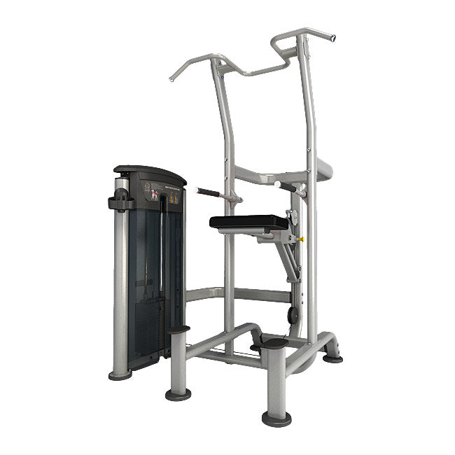 The specially designed Weight Assisted Chin/Dip Combo trains latissimus muscles, triceps, also auxiliary works in biceps, deltoid as well as serratus muscles. Users set up personal settings and train back muscles and upper body effectively with the movement of chin and tricep dip.