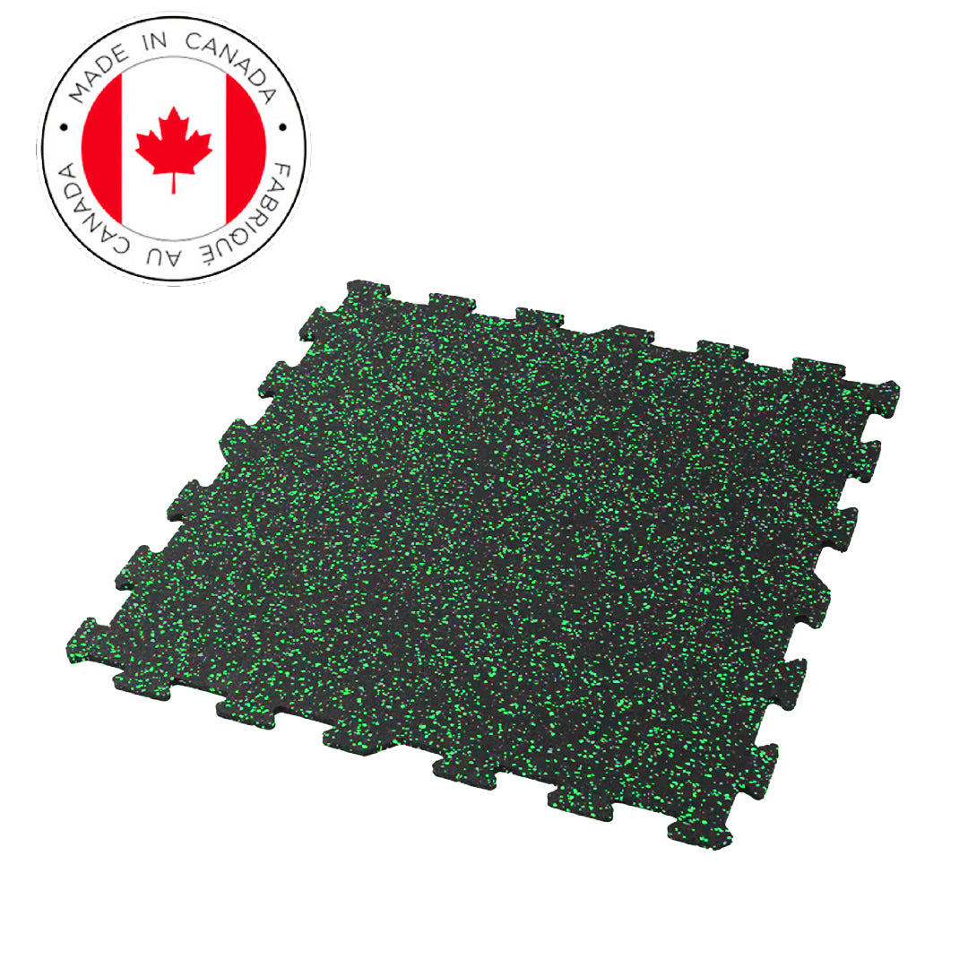 - Durable & Shock-Absorbing – Produced using recycled rubber and EPDM granules, Canadian gym-, garage-, and fitness facility-friendly.