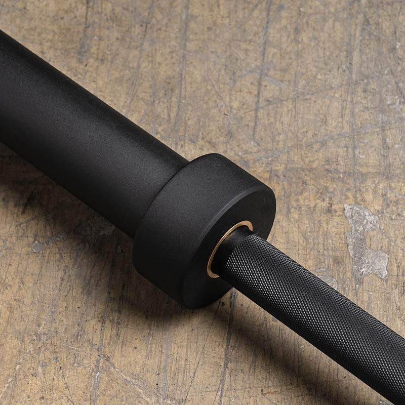 Matte black Olympic barbell with medium depth knurling providing a firm grip for both professional and recreational powerlifting. Designed with a smooth center finish without shredding your chest and hands.