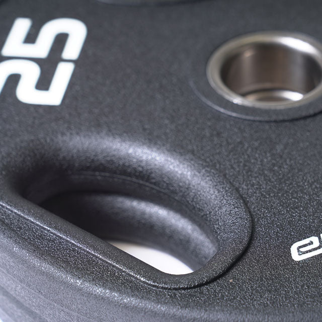 The urethane-filled logos and weight indicators are permanently molded into the plates, ensuring they won’t fade, chip, or peel with repeated use. This not only keeps your training space looking polished and professional, but also makes it easy to identify weight increments at a glance.