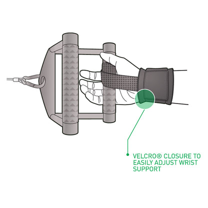 - Built-in 2 in 1 Neoprene® padded wrist support and lifting aid
