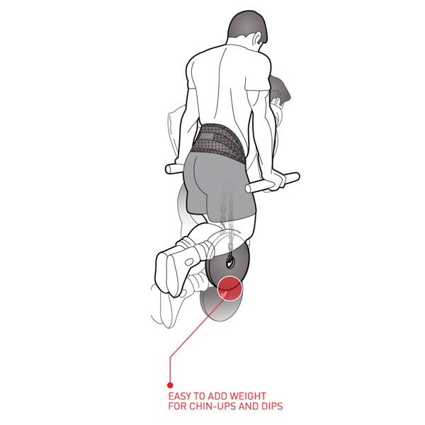 - Increases the effectiveness of dips, chins and lunges by adding resistance beyond your own body weight