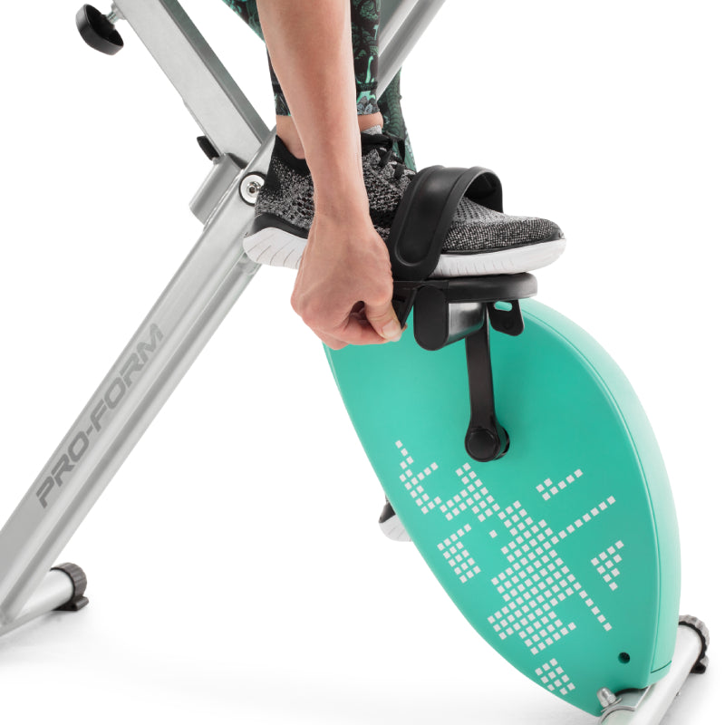 | Folding SpaceSaver® Design | We know you like your house to be clutter-free. So we invented an exercise bike that folds up and out of the way when you’re done with your workout. |