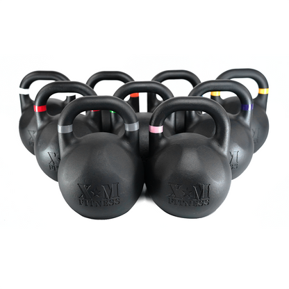 Outstanding performance, durability, stability, and overall feel. The XM Fitness Competition Kettlebells are equal to the best in the industry. Available in weights ranging from 8KG to 44KG, each variation of the Competition Kettlebell maintains consistent dimensions, including a 5.5" base diameter, 11.1" height (282MM), and 33MM handle width. This uniformity ensures seamless transitions as you progress to heavier weights.